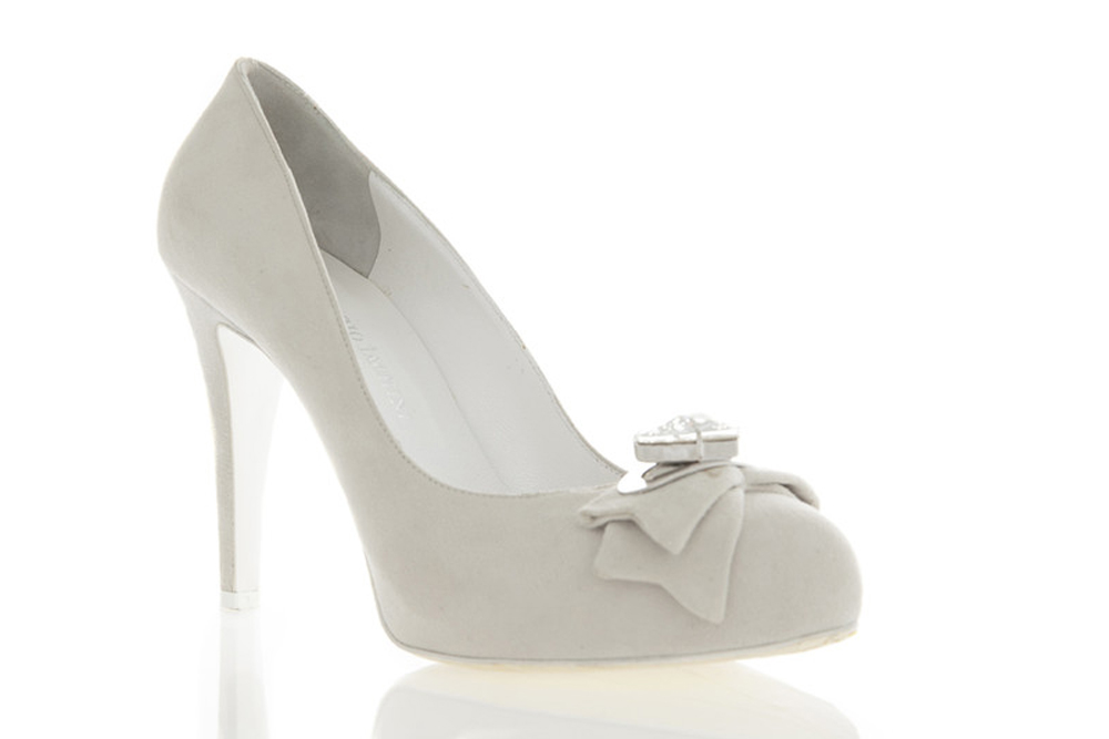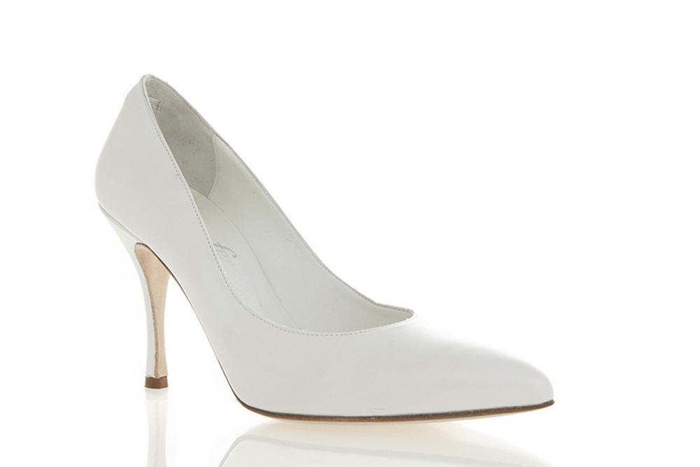 Decolleté molto classica senza nessun elemento di decoro, perfetta per le spose che non vogliono farsi notare per gli accessori. Il tacco non eccessivamente alto compensa l’assenza del plateau. Da provare per una soluzione semplice e raffinata.
