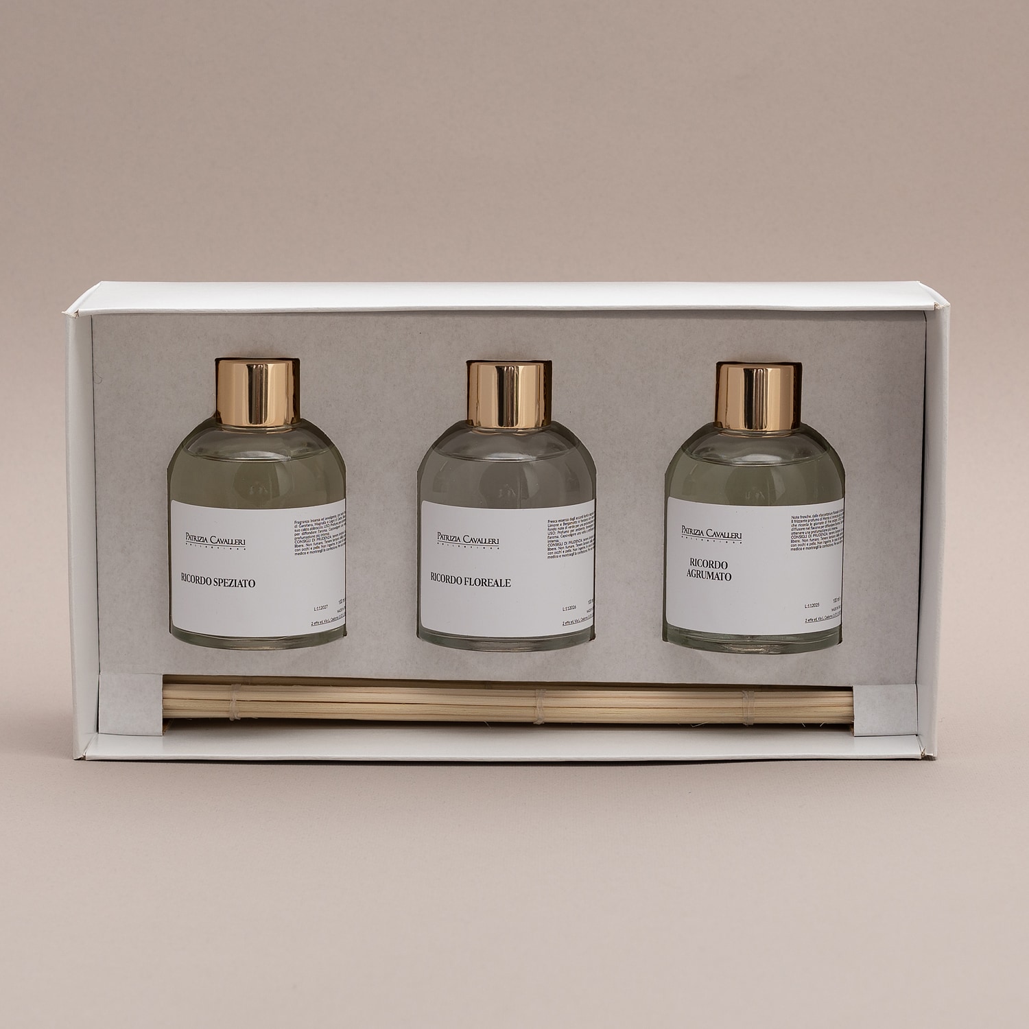 Le profumazioni sono naturali e oli essenziali le tre essenze presenti nel kit sono: ricordo speziato, ricordo floreale, ricordo agrumato.