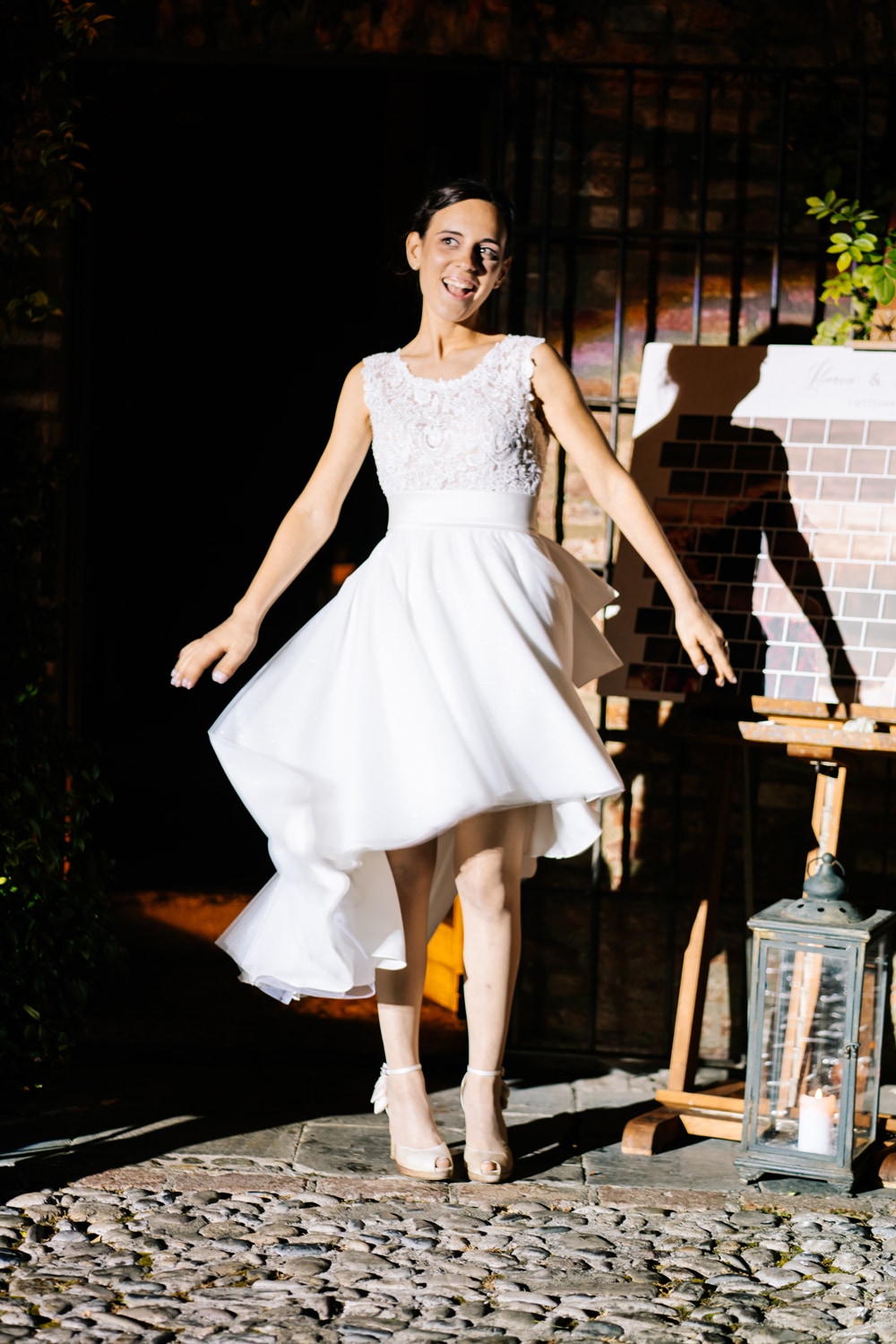 Causa altezza di mio marito, ho indossato delle scarpe veramente alte, era come se non le avessi ai piedi morbide e confortevoli… unico problema da bianche le ho trasfomate in beige, ma questo vuol dire che proprio non le ho mai tolte, neanche per il primo ballo.