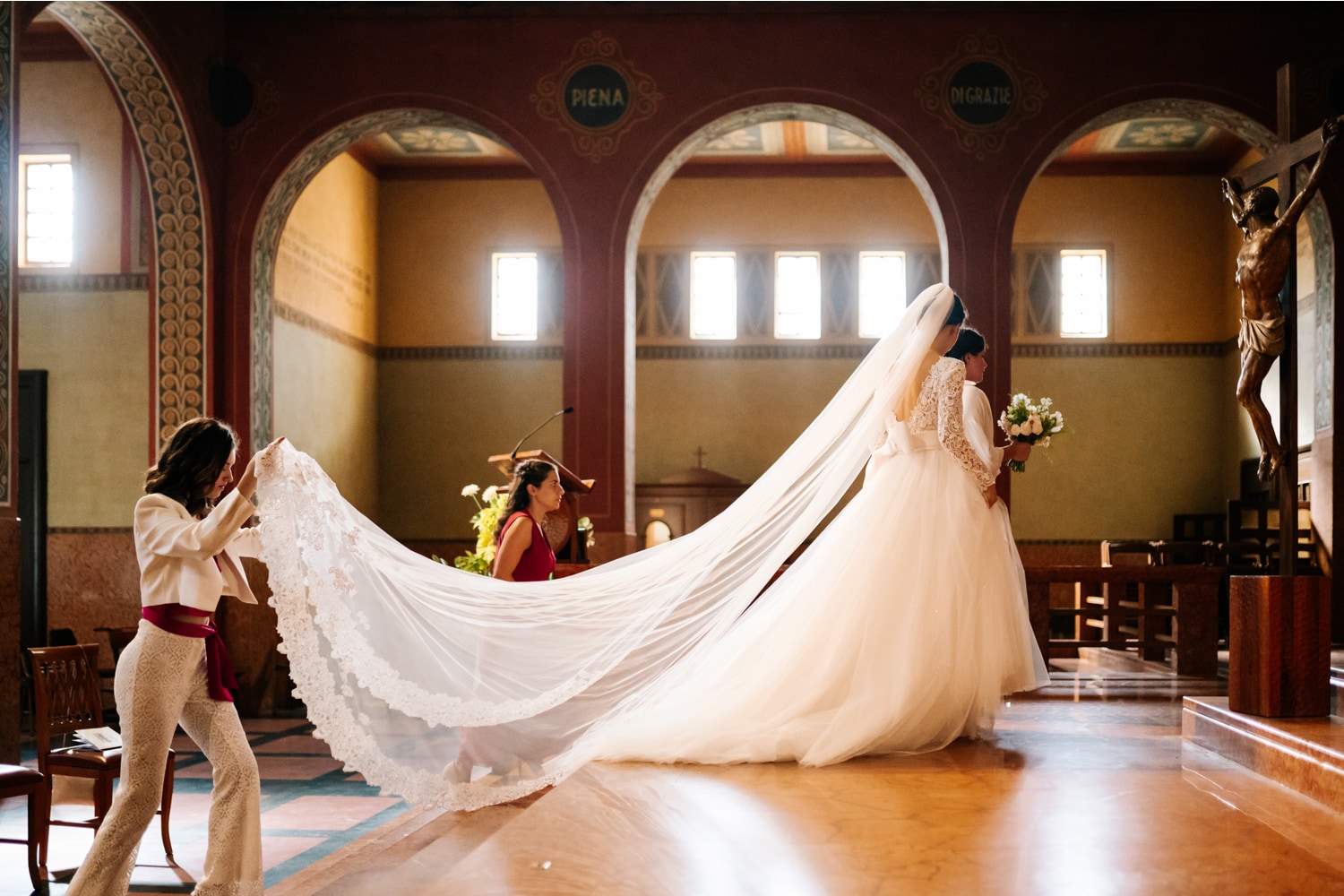 Non dimentichiamo gli accessori del mio abito, ovviamente anche questi tutti rigorosamente Patrizia Cavalleri. Partiamo dal velo, anche qui volevo una cosa semplice, così chiamerei il mio velo di 3 metri tutto ricamato che mi ha lasciato a bocca aperta e ovviamente mi ha commosso più del mio solito…