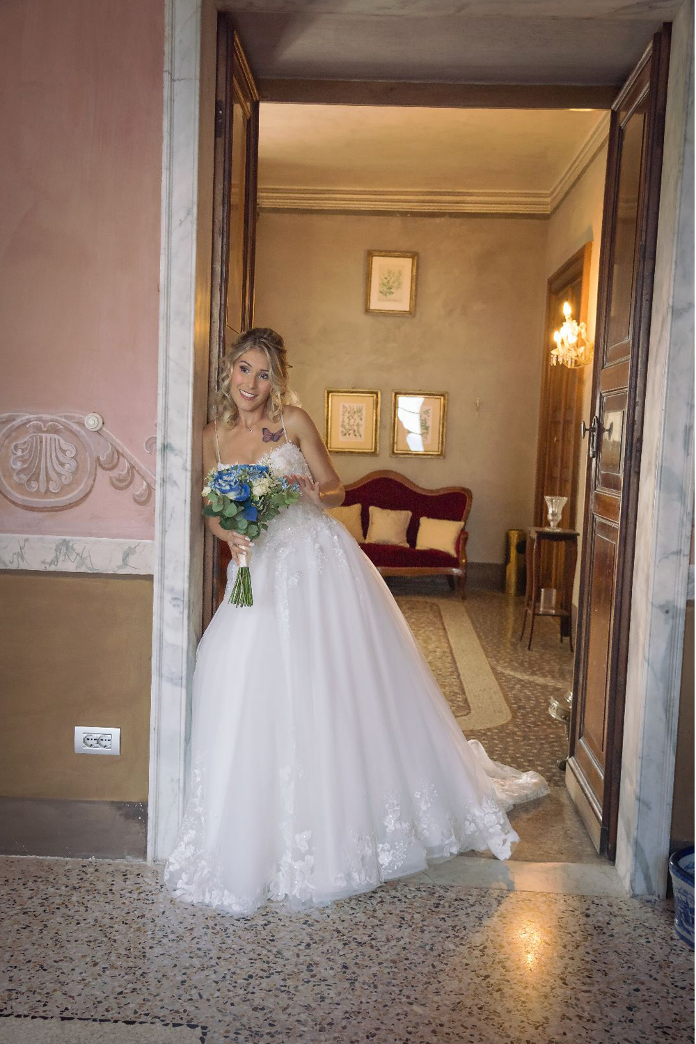 Ho iniziato a seguire l'atelier tramite Istagram e appena ho visto l'abito me ne sono subito innamorata, così ho chiamato per chiedere alcune informazioni e mi è stato detto che l'abito sarebbe ancora dovuto arrivare perché nuova collezione, così ho aspettato che arrivasse, nel frattempo con Patrizia abbiamo fatto una videochiamata conoscitiva molto utile a me e a lei per conoscere il mio corpo, miei gusti e il Mood del matrimonio e poi ecco finalmente la prima prova.