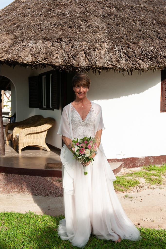 L'esigenza di Sonia è stata quella di avere un abito versatile che servisse sia per la cerimonia alle Seychelles sia per la festa che si è tenuta a Villa Litta di Lainate.